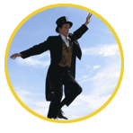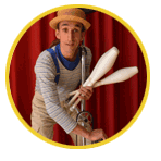Mit klassischer Zirkusmusik untermalt werden Ihre Gäste auf Wunsch mit einbezogen.