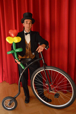 Ob mit Hochrad, auf Stelzen, oder zweiteiligem Clownfahrrad...